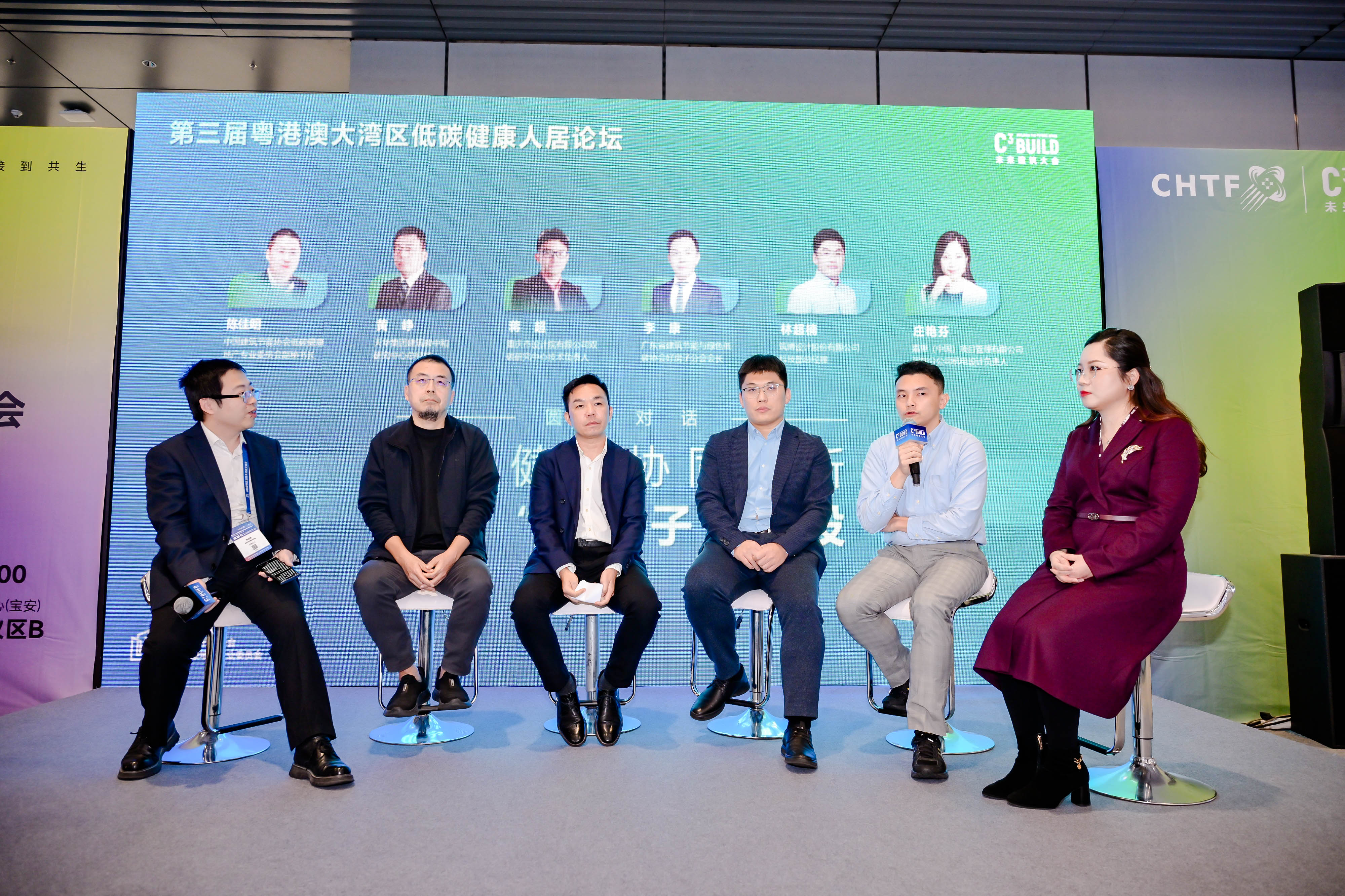 在专委会副秘书长、招商蛇口城市研究院院长助理陈佳明主持下,天华集团建筑碳中和研究中心总经理黄峥、重庆市设计院双碳研究中心技术负责人蒋超、广东省建筑节能与绿色低碳协会好房子分会会长李康、筑博设计股份有限公司科技部总经理林超楠、嘉里(中国)深圳分公司机电设计负责人庄艳芬五位嘉宾,围绕“低碳健康协同创新助力好房子建设”展开深度对话。嘉宾们分别从碳中和设计、区域实践、标准制定、机电集成等角度,探讨了跨专业协同、技术商业化、用户需求适配等关键议题,为行业突破瓶颈提供了多元思路。