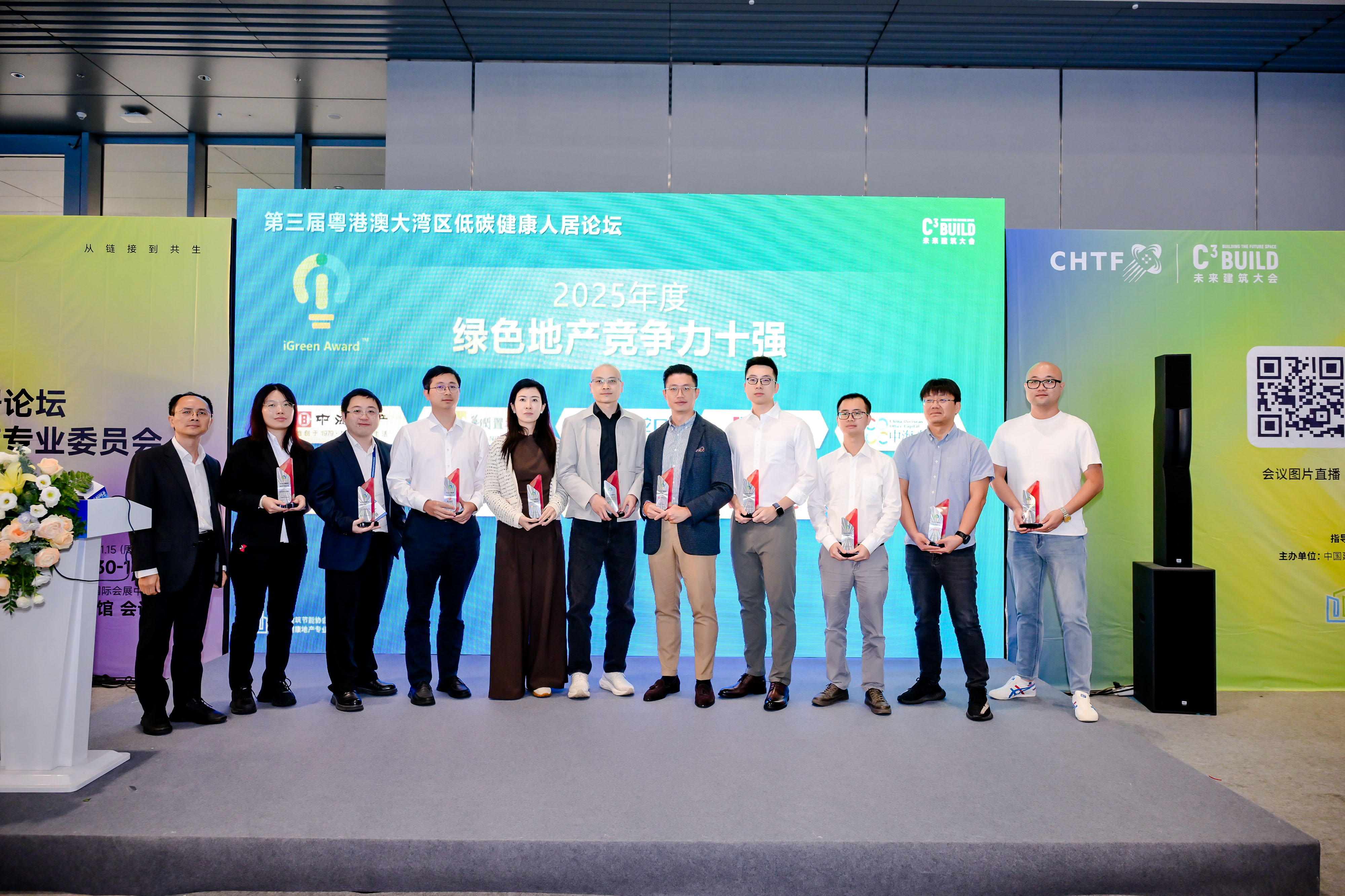 中国海外发展有限公司、华润置地有限公司、招商局蛇口工业区控股股份有限公司、珠海华发实业股份有限公司、中海商业发展(深圳)有限公司、绿城中国控股有限公司、北京首都开发股份有限公司、越秀地产股份有限公司、万科企业股份有限公司、大悦城控股集团股份有限公司获评2025年度绿色地产竞争力十强。