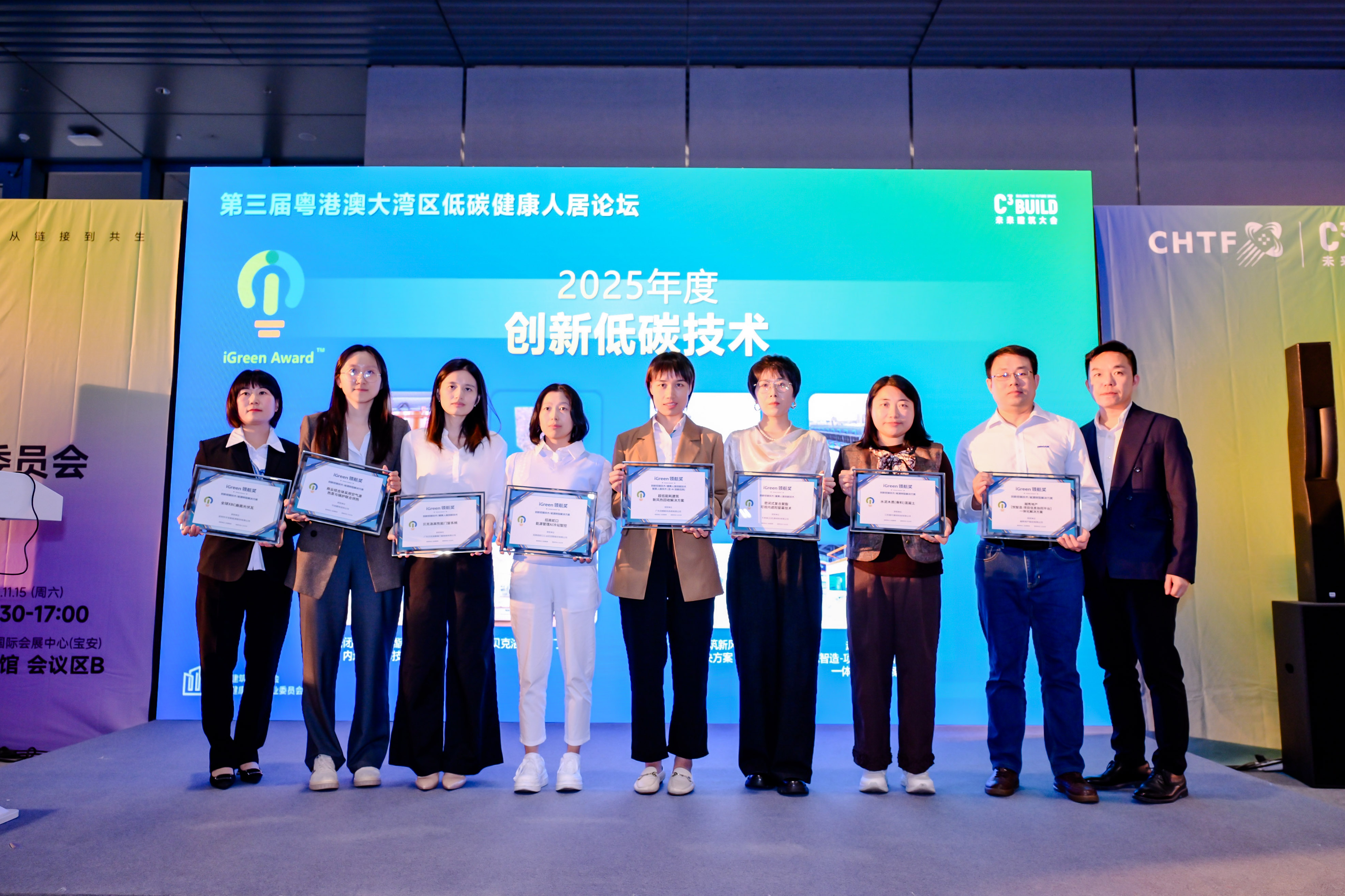 深圳市华宝新能源股份有限公司,全球XBC曲面光伏瓦、江苏香叶建材科技有限公司,水泥木质(骨料)混凝土、招商局蛇口工业区控股股份有限公司,招商蛇口能源管理AI冷站智控、华润置地有限公司,商业综合体采用空气源热泵与锅炉联合供热、卡本纳(北京)新材料有限公司,密闭式复合聚酯可视内遮阳窗幕技术、广东贝克洛幕墙门窗系统有限公司,贝克洛高性能门窗系统、广东百朗新风系统有限公司,超低能耗建筑新风热回收解决方案、越秀地产股份有限公司,越秀地产【悦智造-项目信息协同平台】一体化解决方案荣获2025年度创新低碳技术。