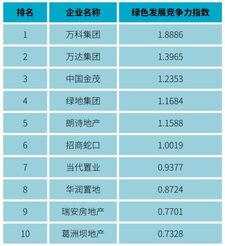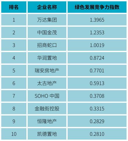 房地产全行业绿色运营竞争力总十强