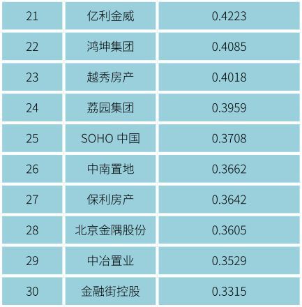 绿色地产TOP30的绿色发展竞争力指数都是多少,学会PRIMB模型