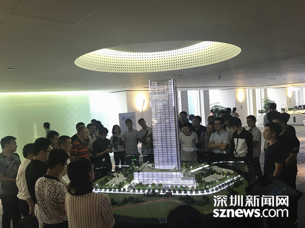 与会人员在达实智能大厦体验中心,听工作人员介绍旋转沙盘