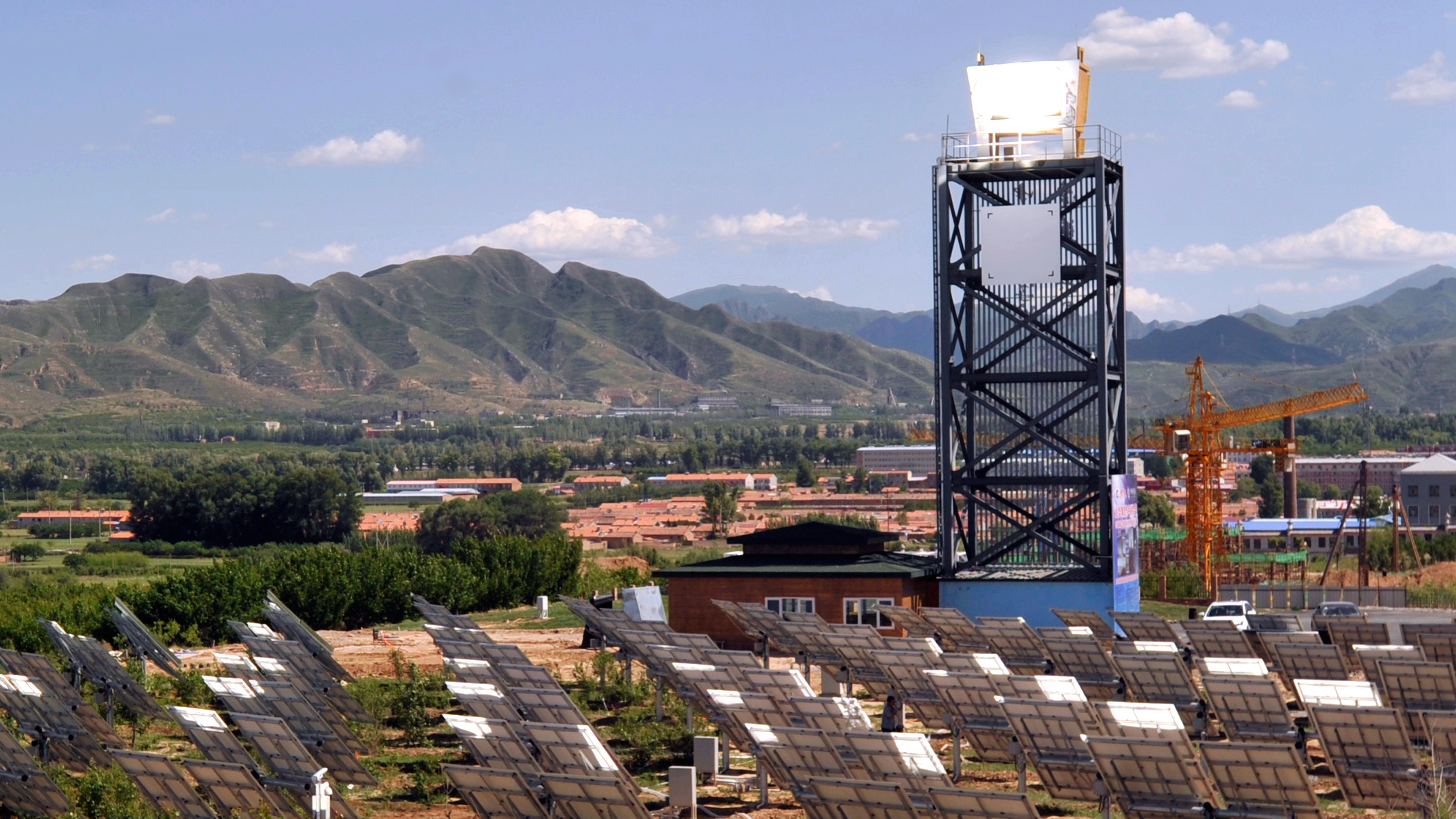 2018年10月5日,电工所太阳能热利用技术研究部研制的小型集中型太阳能供热示范系统,在没有任何辅助能源的条件下,为张家口市涿鹿县矾山镇黄帝城小镇达华建国酒店共计3000-5000平方米的建筑供暖,至今持续运行3个月,成功将多年研发的集中型太阳能供热技术推向示范应用。