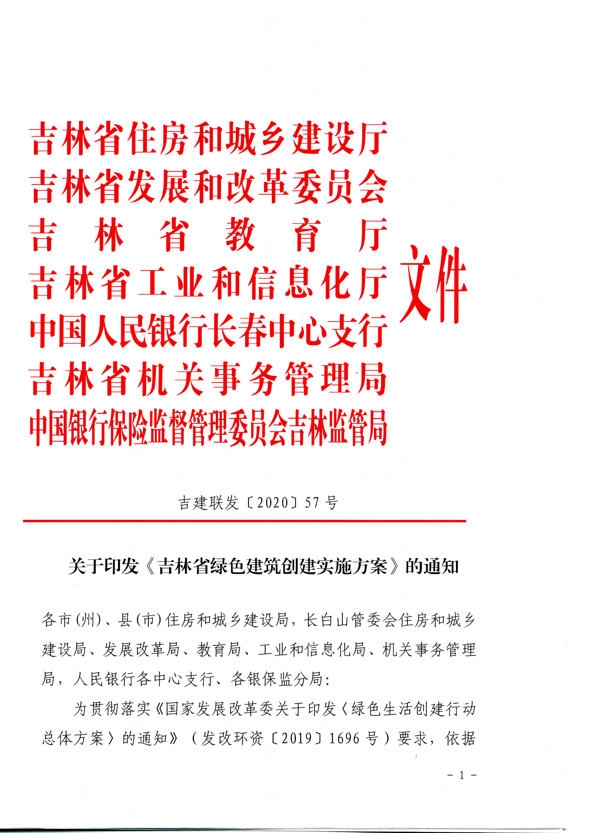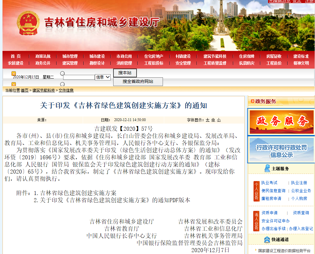 12月11日,吉林住房和城乡建设厅发布了印发《吉林省绿色建筑创建实施方案》的通知。要求到2022年底,当年城镇新建建筑中绿色建筑面积占比达到70%,到2025年底,当年城镇新建建筑中绿色建筑面积占比达到80%。